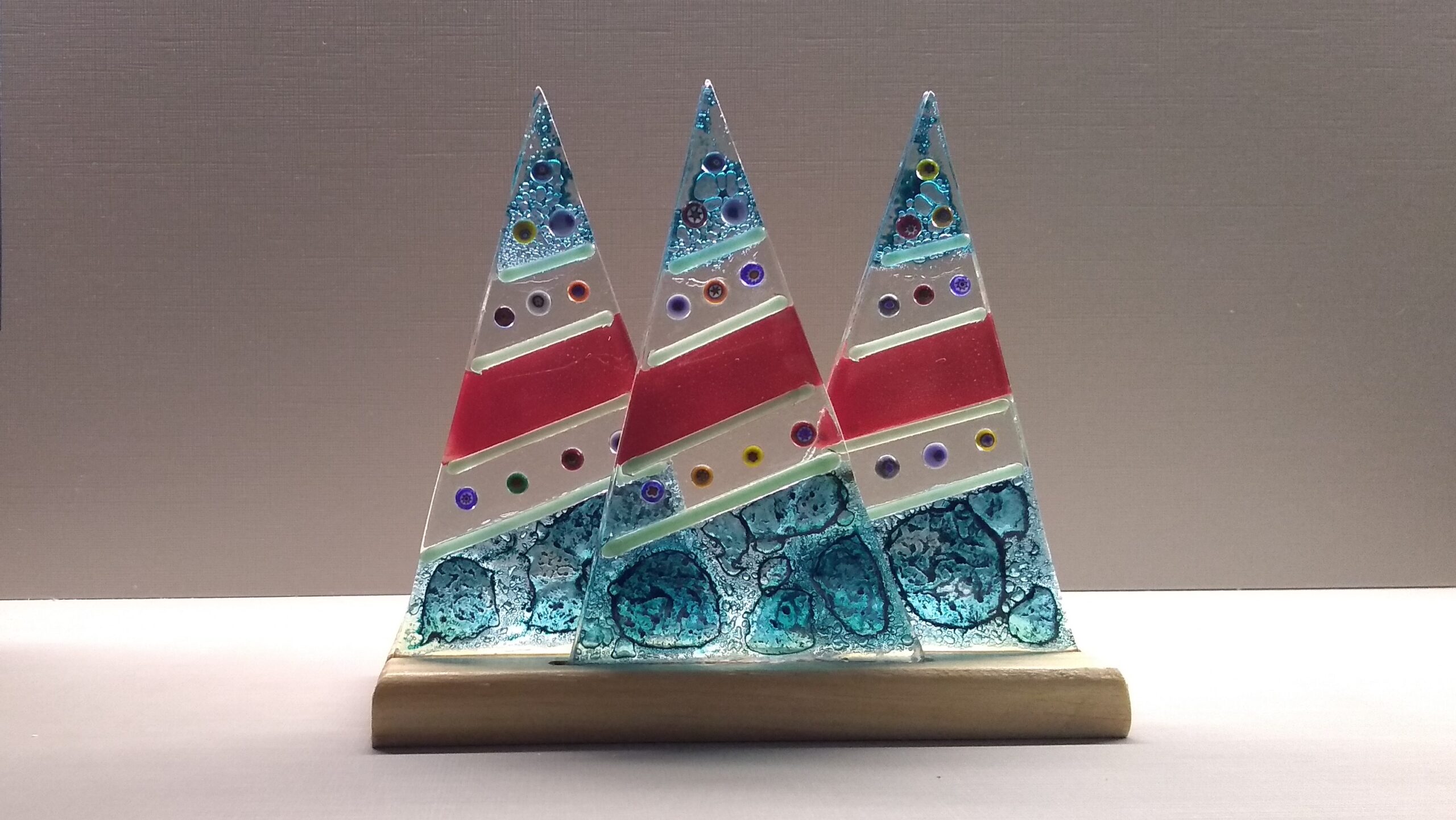 Porta Velas de Arvores de Natal Verdes Bolhas feito em vidro fusing para trazer Paz e Muita Energia Boa ao seu Natal